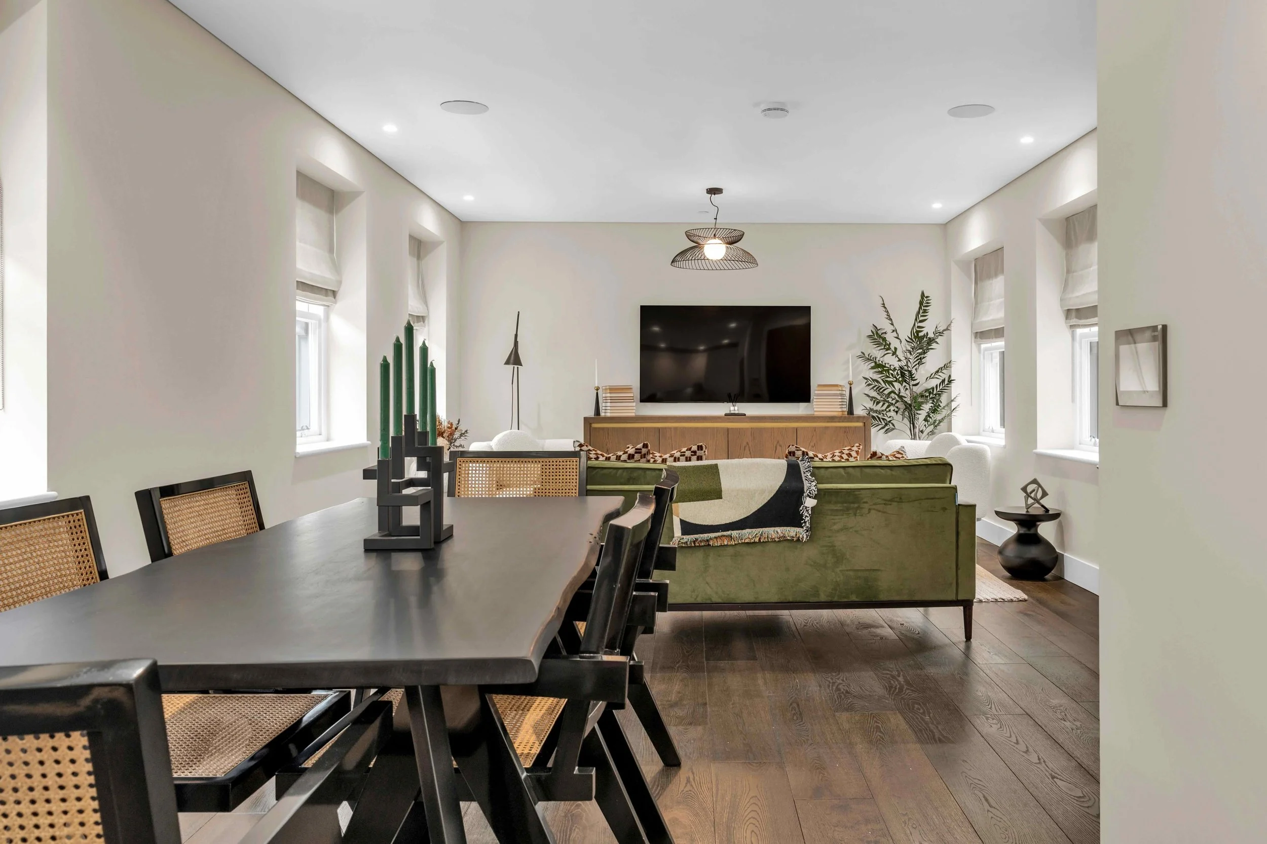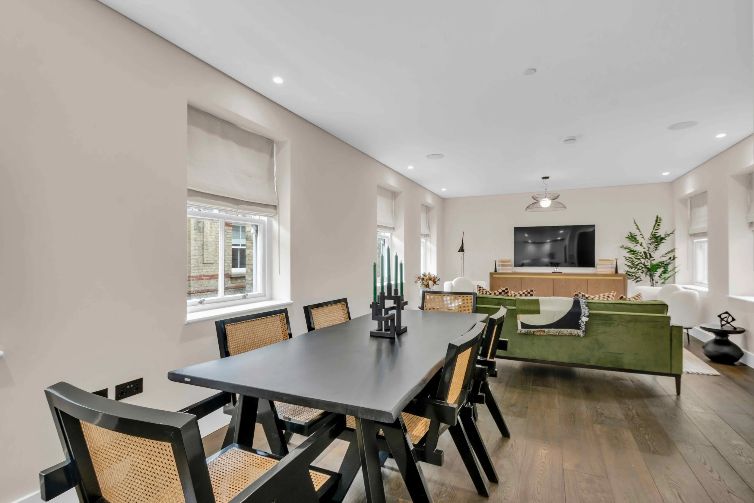 This remarkable two-bedroom apartment in the heart of Holborn has been designed with exceptional attention to detail, blending historic character with contemporary luxury. Accessed via a private elevator, the apartment opens into a breathtaking open-plan living, dining, and kitchen space adorned with bespoke furnishings, hardwood floors, and marble finishes.
