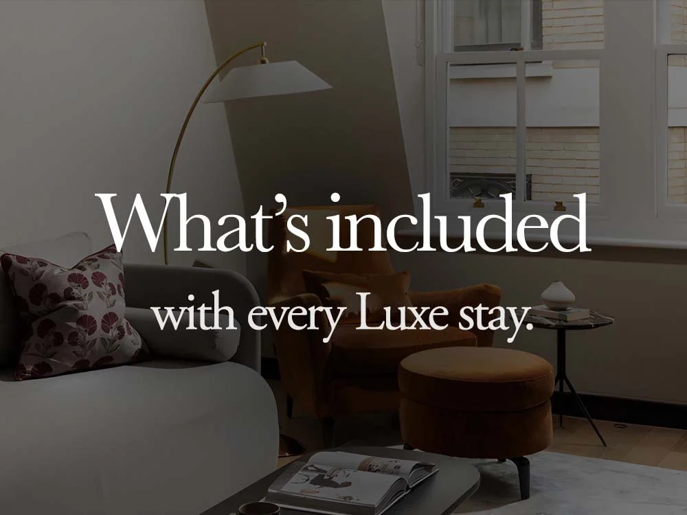 The illustration shows an overview of what to expect when booking with Stay Luxe - including our trademark booking perks, on-site amenities and guest services.