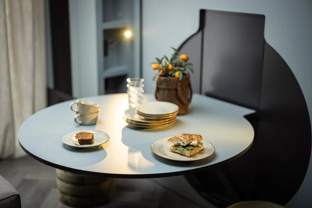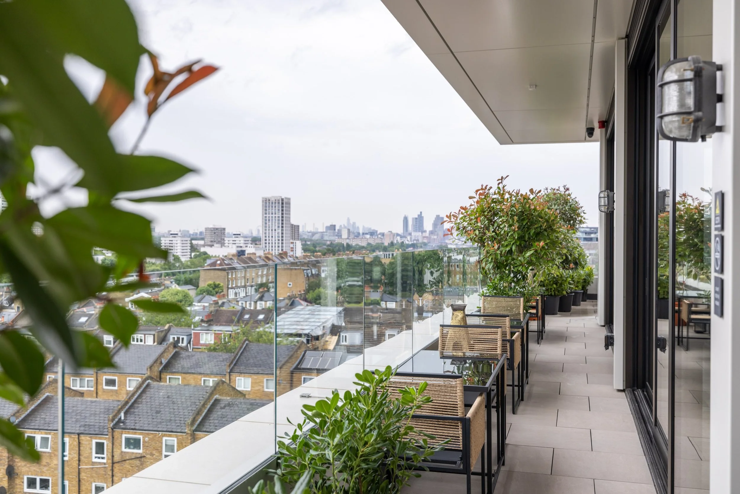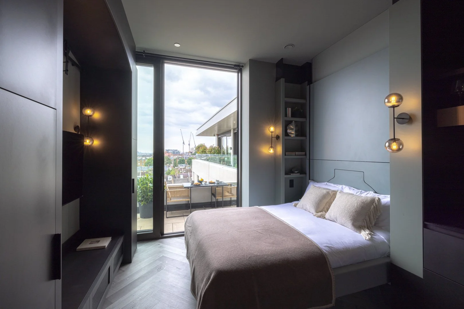 Guests can also enjoy exclusive on-site amenities, including co-working spaces, a cinema room, and a state-of-the-art gym. For a truly memorable evening, head to the rooftop terrace and take in panoramic views of London. The Studio Penthouse blends modern design, comfort, and outdoor serenity, an ideal retreat for both work and relaxation.