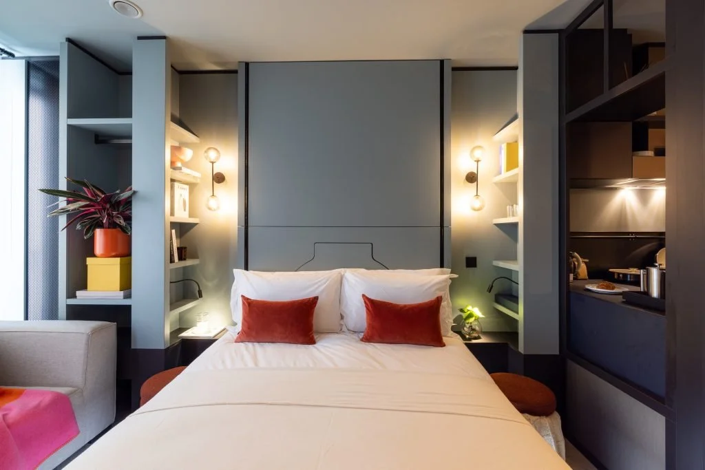 Guests also have access to a range of on-site amenities designed to balance work and leisure, from quiet co-working areas and dedicated work zones to a private cinema room and a state-of-the-art gym. When it’s time to unwind, the rooftop terrace provides the perfect escape, with sweeping views across the London skyline. This Studio Deluxe is a refined space for those seeking modern city living with all the essentials close at hand.